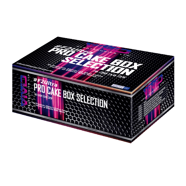 This is an ultra-high quality pack of pro-effect cakes. Each of the 6 cakes has a mine lift to a burst above and each has a different effect including white and red strobe, brocade crown, gold and multi-coloured stars, crackling spiders, chrysanthemum crackling and titanium gold coconuts. We’ve ordered a large quantity of these as they’ll be used in pairs in our pro shows as well as being a retail item.